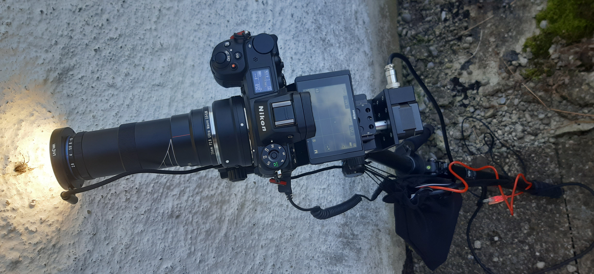 Laowa provides a ring light as an option. It is powered via a USB connection. Fortunately, the battery pack that comes with the Stackmaster revolution offers this. This means that a second power bank is not necessary.